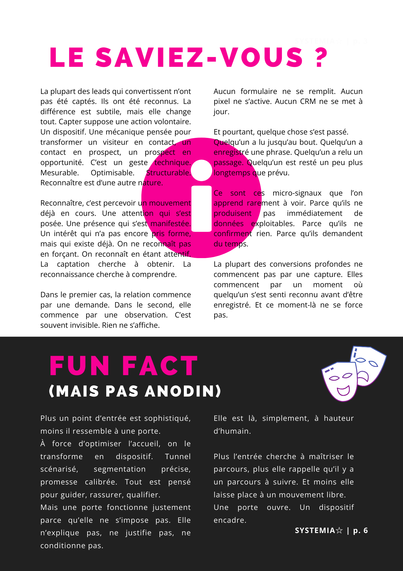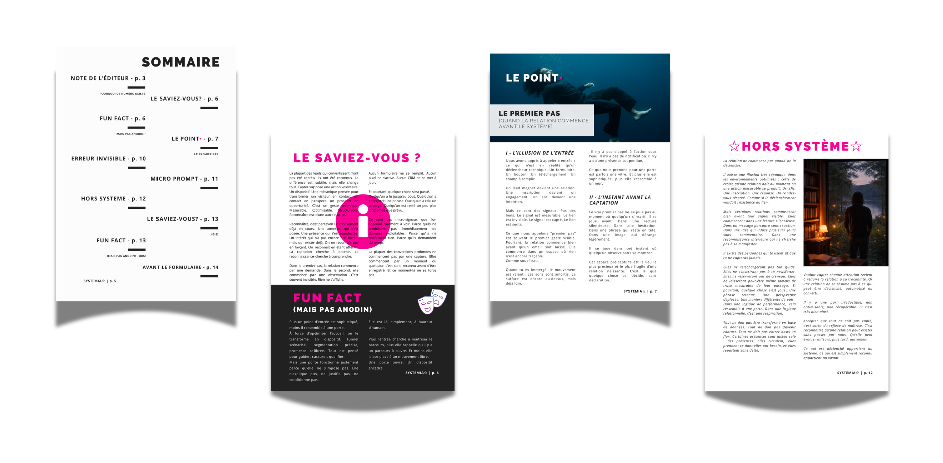 SYSTEMIAâ ne cherche pas Ă amĂ©liorer un funnel. Il cherche Ă questionner le seuil. Ce mensuel ne propose ni checklist ni stratĂ©gie prĂȘte Ă appliquer. Il ouvre un espace pour observer ce qui se joue avant le clic, avant le formulaire, avant la capture.