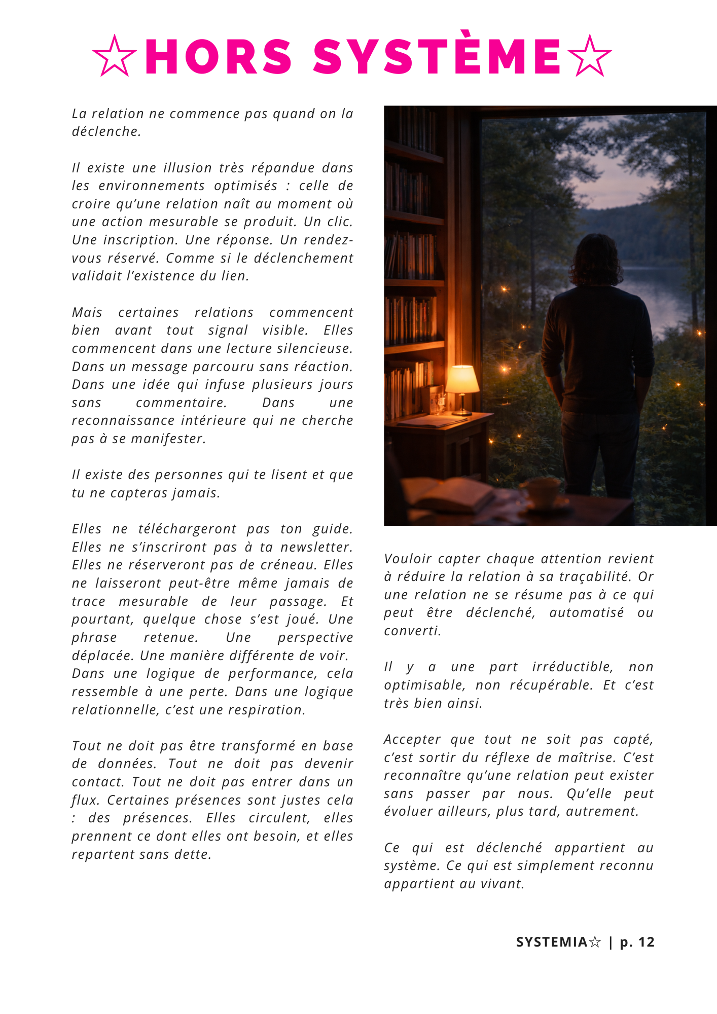 SYSTEMIAâ - Mensuel #2 ne promet pas plus de leads, ni un tunnel plus performant, ni une captation optimisĂ©e. Il propose de comprendre pourquoi, parfois, ce que lâon appelle âentrĂ©eâ empĂȘche la relation de commencer.